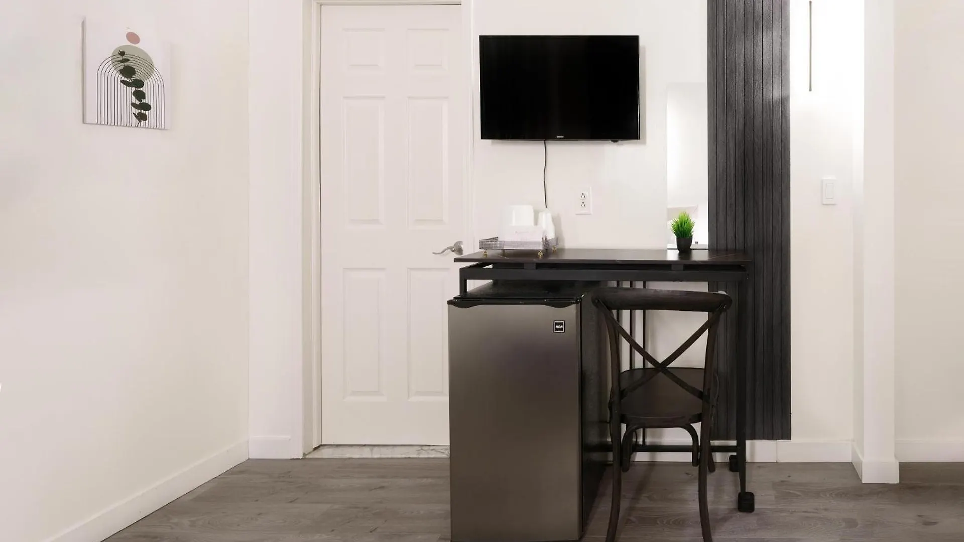 También hay un horno de microondas y una nevera en la habitación.